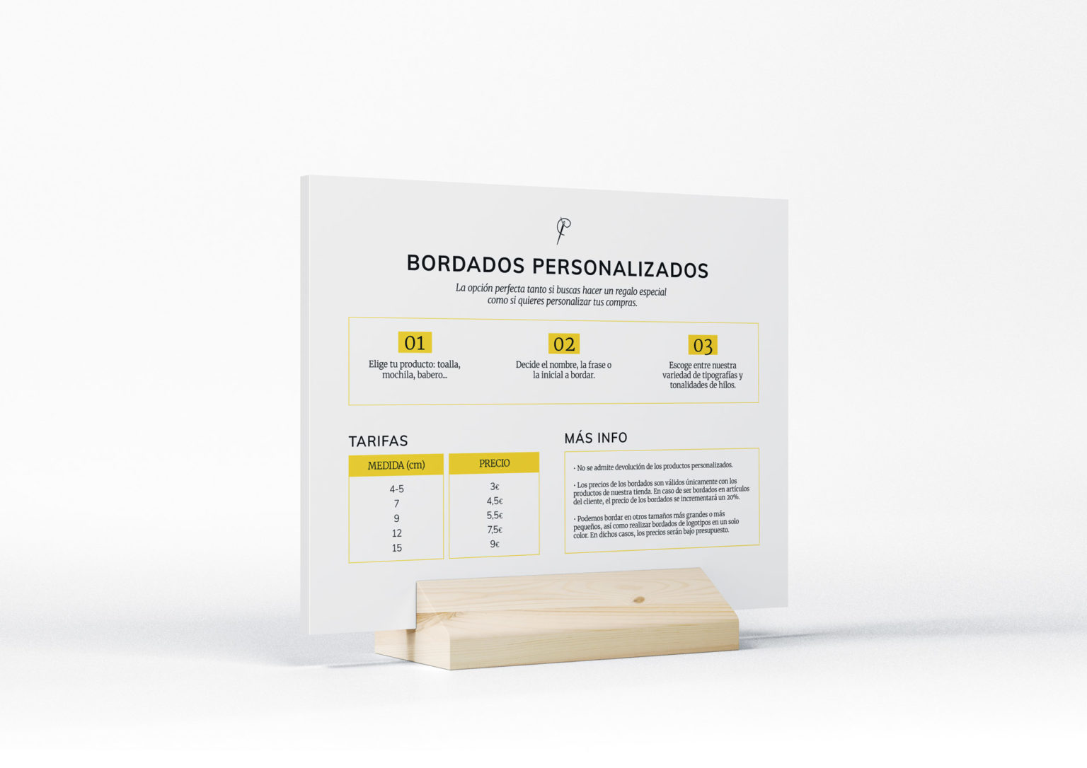 Creamos un distintivo donde se combinan dos tipografías muy diferenciadas: una fuente condesada, actual y con mucha personalidad, y otra manuscrita de corte clásico y retro con una aguja en la “L” final que es el icono principal de la marca. Una combinación que refleja el concepto de la tienda: productos artesanales contemporáneos.
